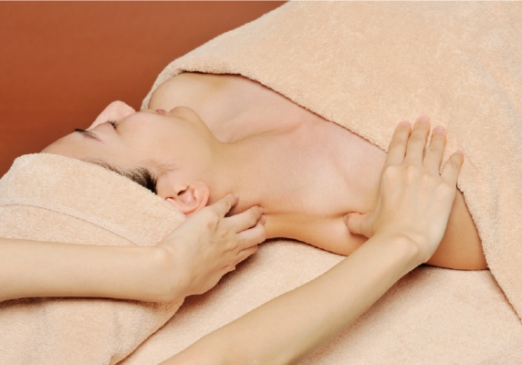 遠赤外線効果のあるミネラルクリームで顔から肩首までオールハンドでトリートメントすることで、血行を促進。