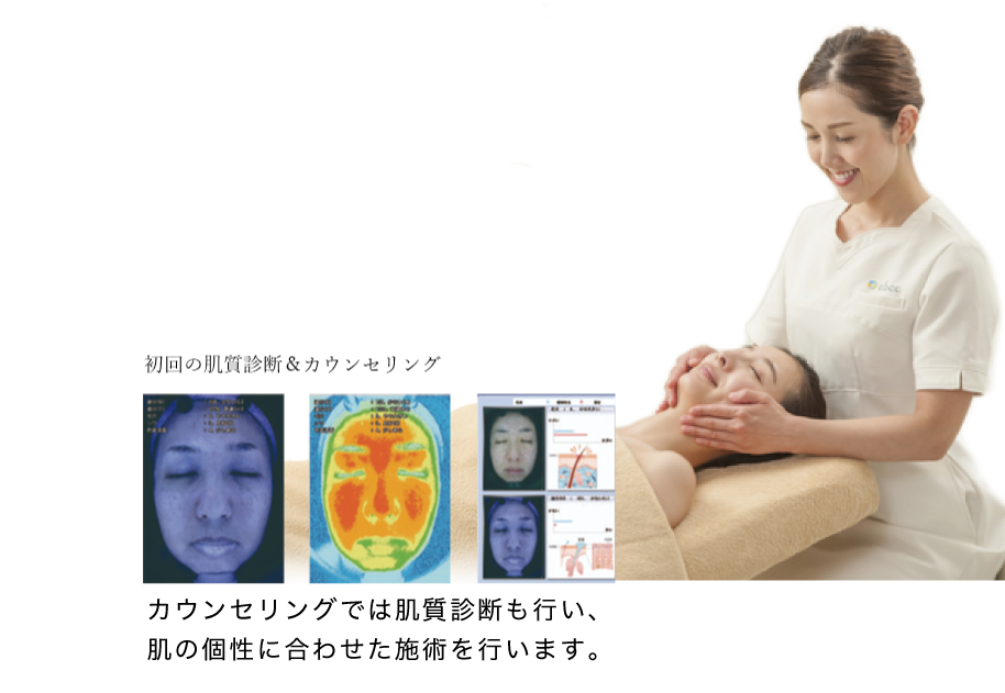 スキンケアアドバイザーがカウンセリングをしっかり行い、お客様の肌質に合わせたお手入れを行いますのでご安心ください。