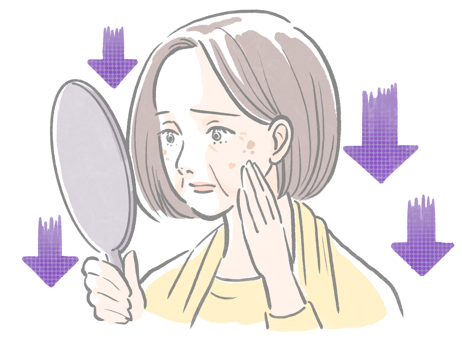 ・肌のハリに欠かせないコラーゲンやエラスチンが傷つき、シワやたるみに繋がります。