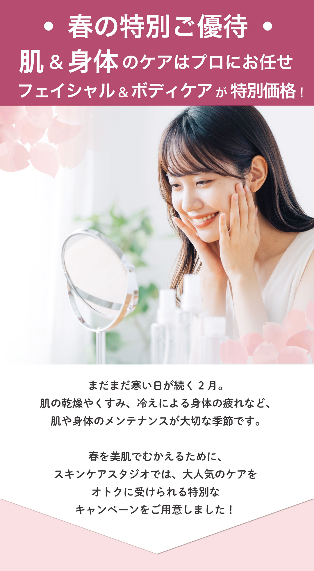 HOME > スタジオキャンペーン > スタジオキャンペーン Spring Beauty フェイシャル&ボディケアキャンペーン[raicp] 2026年1月27日 Twitter Share Pocket Hatena LINE コピーする -スタジオキャンペーン
