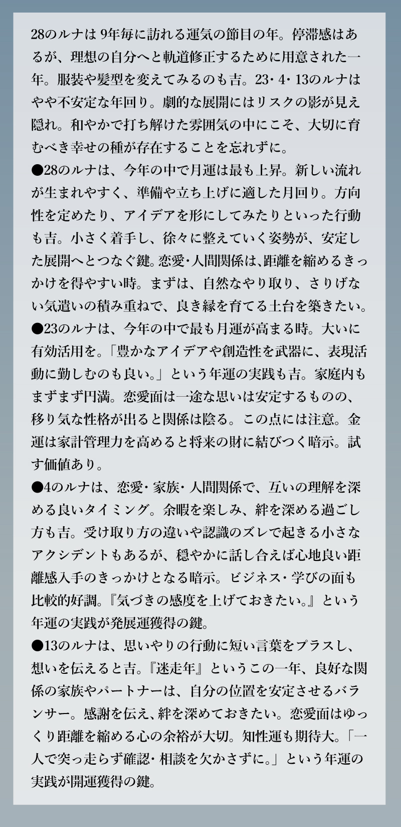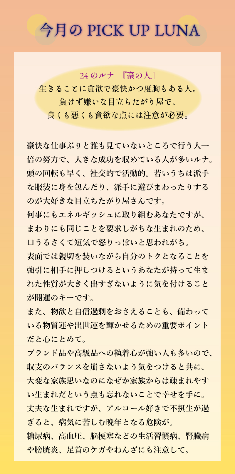 HOME > EBMレター > EBMレター 5月のラッキールナランキング 2026年4月27日 …気になる続きはコチラから↓ ◇◆webサイト【新占星術ルナ28】にて◆◇ ◆◇あなたのルナをお調べいただけます◇◆ ◎今日の運勢◎あなたの金運◎あなたの恋愛・結婚◎吉凶カレンダー◎相性診断など、コンテンツも充実♪ https://luna28.jp/ へアクセス! EBMのスキンケアスタジオでもお調べできます。 皆様のご来店を心よりお待ちしております。 次回の【EBMレター】もお楽しみに! Twitter Share Pocket Hatena LINE コピーする -EBMレター
